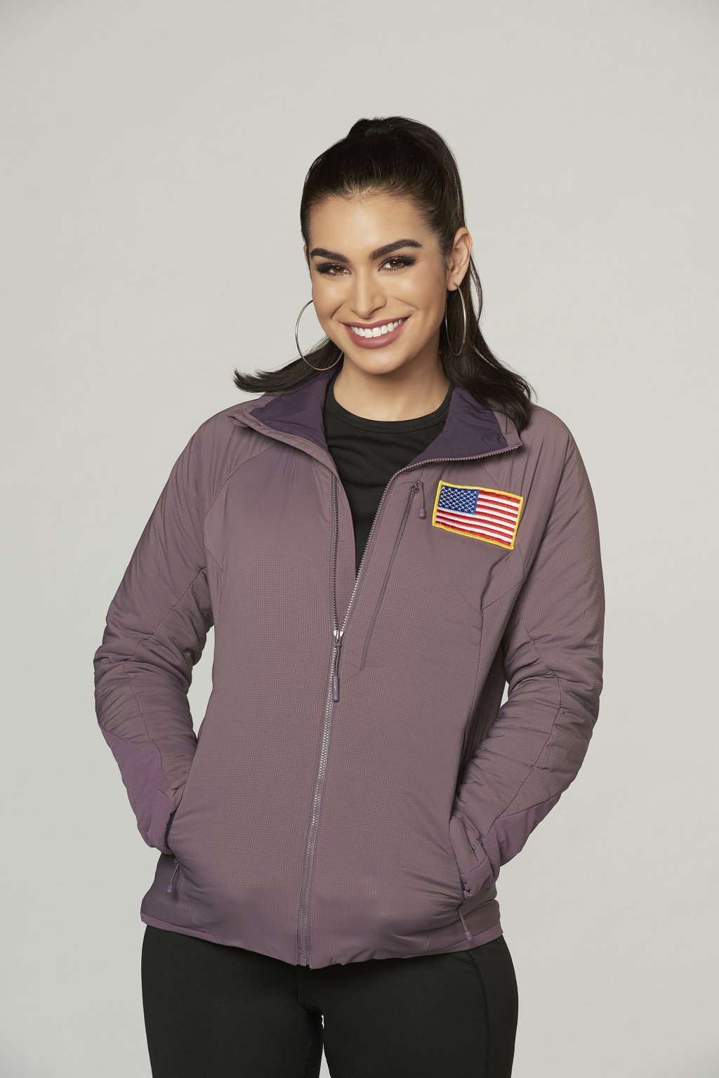 Former The Bachelor bachelorette Ashley Iaconetti poses in a cast photo for The Bachelor Winter Games
